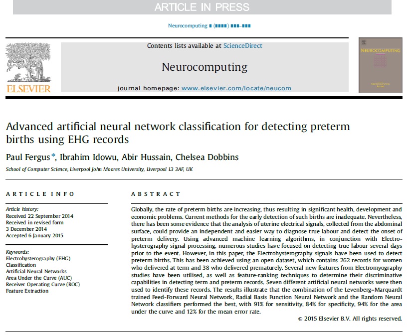 دانلود رایگان مقاله انگلیسی-شبکه های عصبی مصنوعی پیشرفته برای تشخیص تولد های زودرس