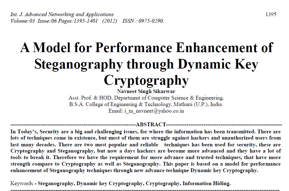 مدلی برای ارتقاء عملکرد steganography از طریق رمزنگاری کلید پویا