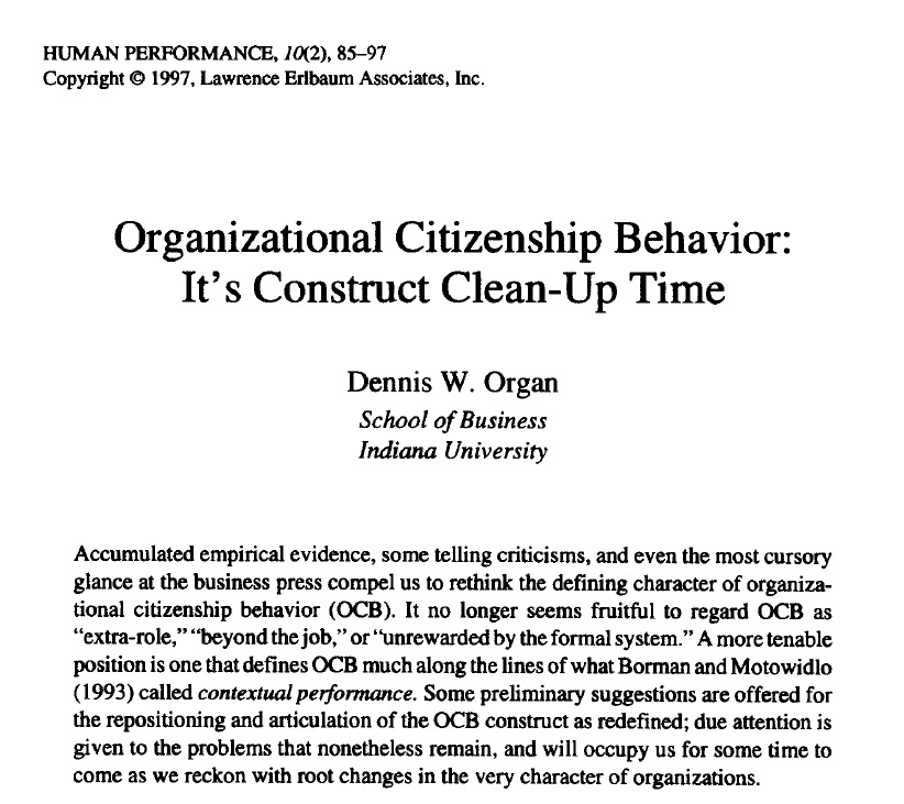 organizational Citizenship Behavior-Its Construct Clean up Time