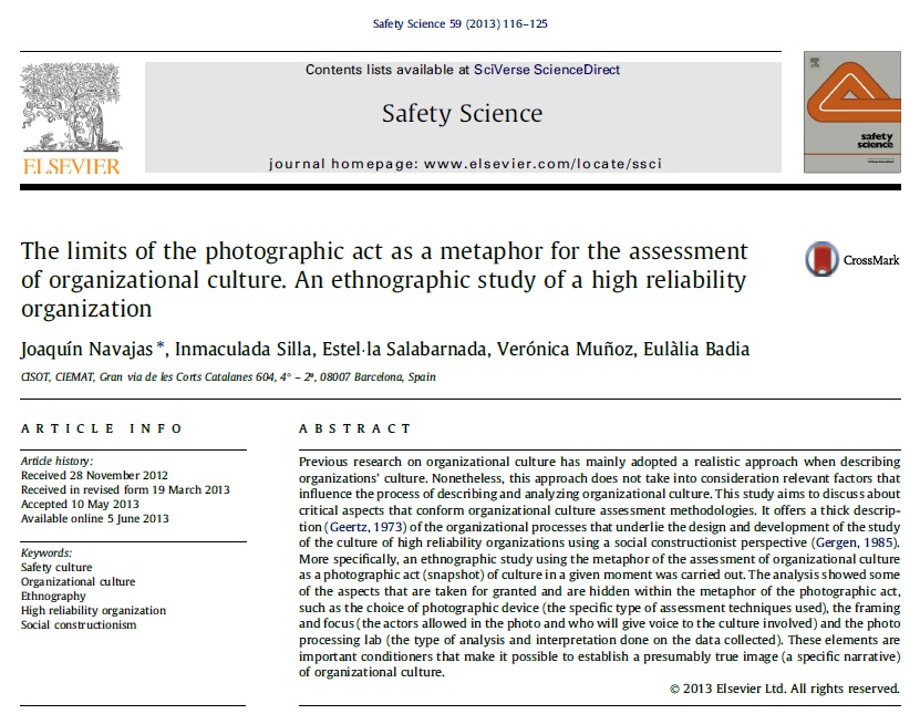 Safety culture; Organizational culture; Ethnography; High reliability organization; Social constructionism