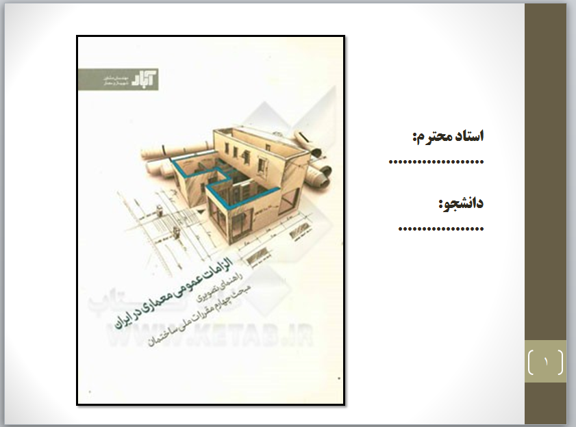 پاورپوینت کتاب معماری - الزامات عمومی معماری در ایران - راهنمای تصویری مبحث چهارم مقررات ملی ساختمان