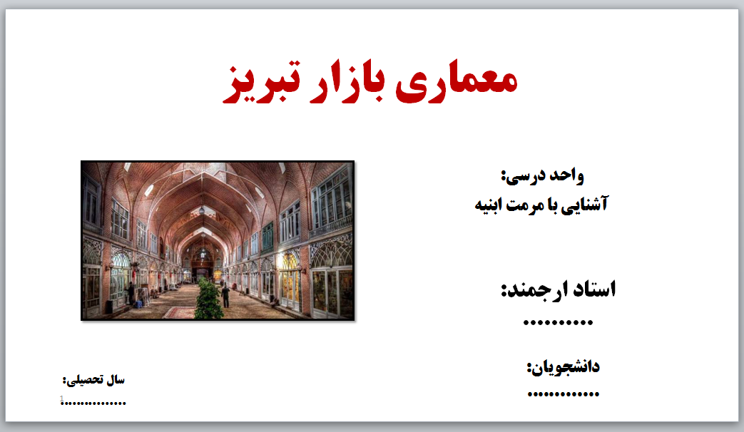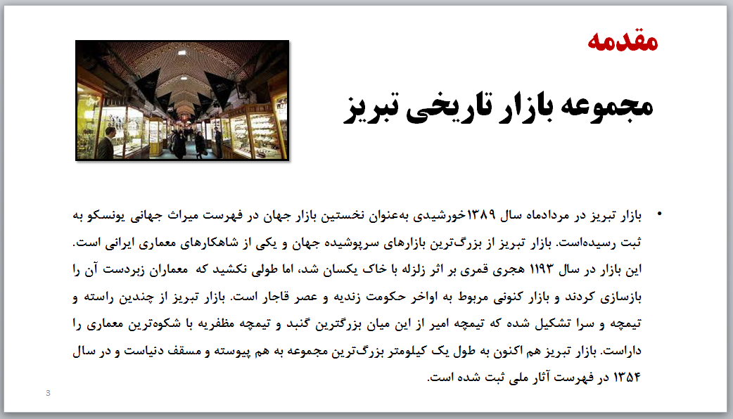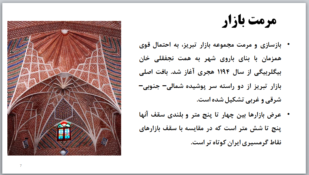 5- پارسی، فرامرز، (1384)، "بازار تبریز"، معمار، 33، مهر و آبان 1384: 106 -111.