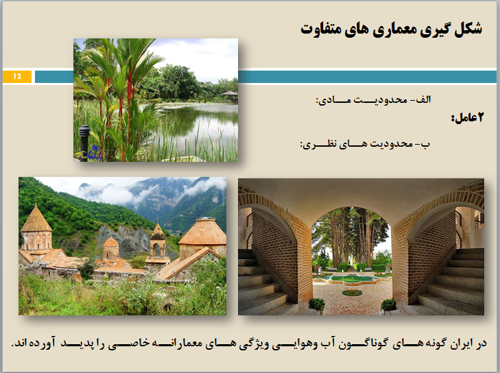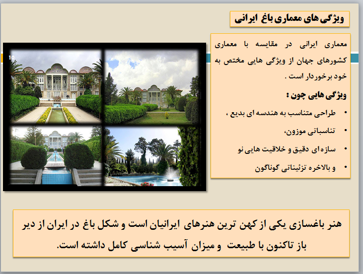 باغ ایرانی و تاثیر عناصر مختلف در طراحی معماری.