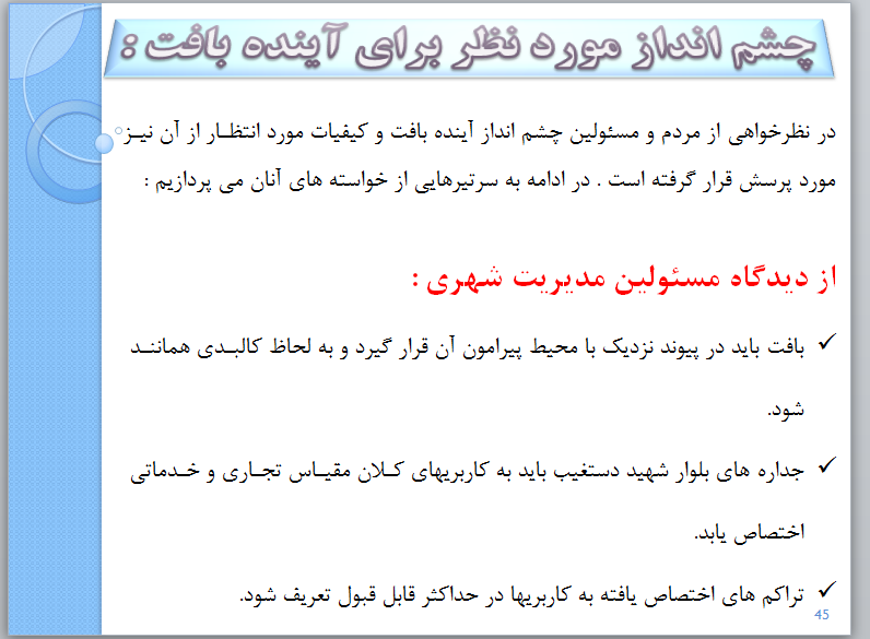 ـ افشار، آزاده ؛ (1383) " در پیچ و خم بافتهای فرسوده شهری " ؛ شهرداریها ، شماره 70