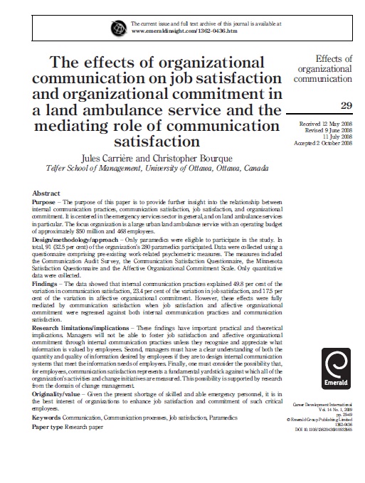 دانلود رایگان مقاله انگلیسی -اثر ارتباطات سازمانی روی رضایت شغلی و تعهد سازمانی