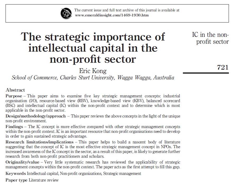 The strategic importance of intellectual capital in the non-profit sector