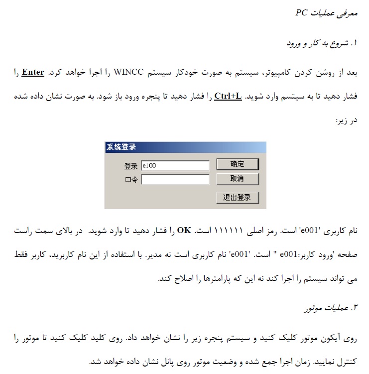 بعد از روشن کردن کامپیوتر، سیستم به صورت خودکار سیستم WINCC را اجرا خواهد کرد. Enter را فشار دهید تا به سیتسم وارد شوید. Ctrl+L را فشار دهید تا پنجره ورود باز شود. به صورت نشان داده شده در زیر: