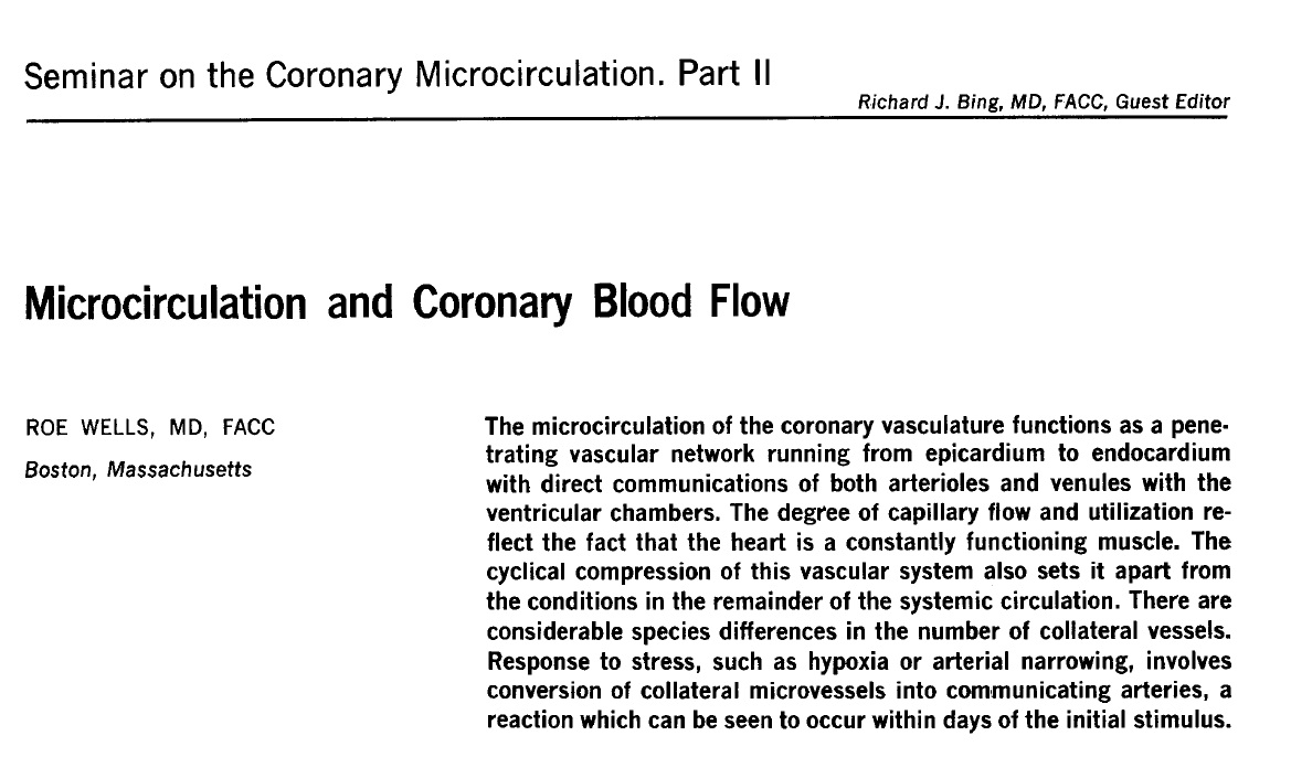 The microcirculation of the coronary vasculature functions as a penetrating vascular network running from epicardium to endocardium with direct communications of both arterioles and venules with the ventricular chambers. The degree of capillary flow and utilization reflect the fact that the heart is a constantly functioning muscle. The cyclical compression of this vascular system also sets it apart from the conditions in the remainder of the systemic circulation. There are considerable species differences in the number of collateral vessels. Response to stress, such as hypoxia or arterial narrowing, involves conversion of collateral microvessels into communicating arteries, a reaction which can be seen to occur within days of the initial stimulus.