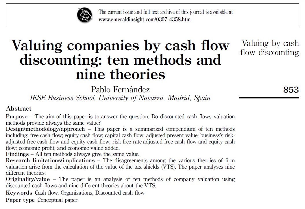 – The paper is an analysis of ten methods of company valuation using discounted cash flows and nine different theories about the VTS.