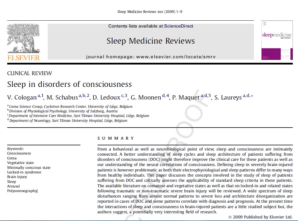 Sleep in disorders of consciousness
