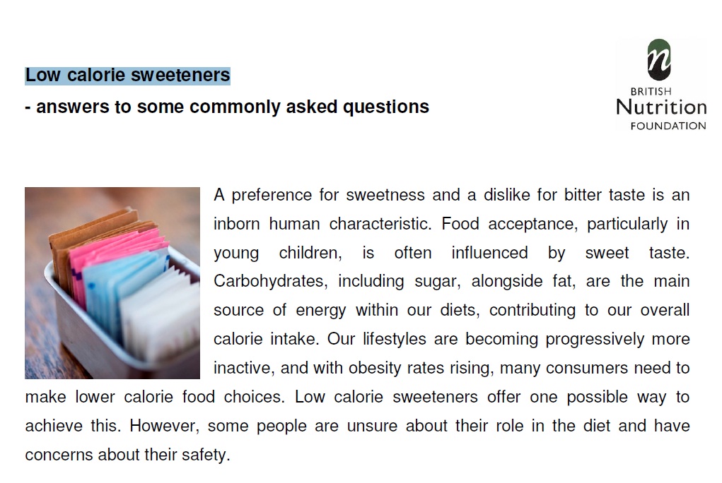 ترجیح مزه شیرین و ناخوشایند بودن مزه تلخ یک مشخصه ذاتی انسان است. پذیرش غذا، مخصوصا در کودکان کم سن و سال، اغلب تحت تاثیر مزه شیرینی است. کربوهیدرات ها از جمله شکر همراه چربی ها منبع اصلی انرژی در رژیم غذایی ما هستند که به جذب کالری کلی کمک می کنند. سبک زندگی ما به صورت افزاینده در حال غیرفعال شدن است و با افزایش نرخ چاقی، بسیاری از مصرف کننده ها باید غذاهای کم کالری تر را انتخاب کنند. شیرین کننده های کم کالری یک روش محتمل برای تحقق این امر هستند. هرچند برخی درباره نقش آن ها در رژیم غذایی اطمینان ندارند و نگرانی هایی درباره ایمنی آن ها دارند.