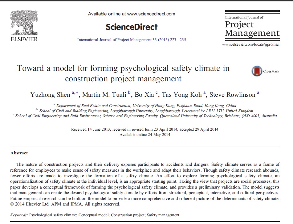Psychological safety climate; Conceptual model; Construction project; Safety management